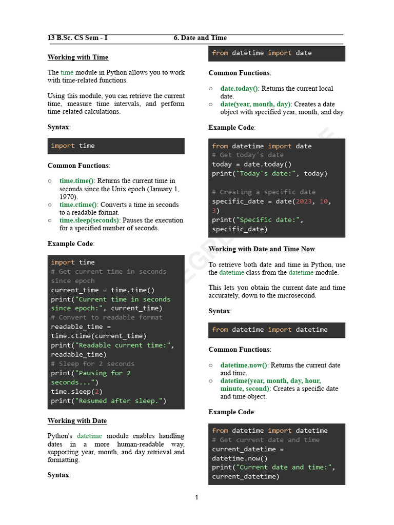 ○ time.sleep(seconds): Pauses the execution print("Specific date:",