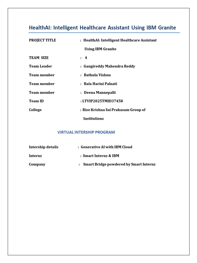 PROJECT TITLE : HealthAI: Intelligent Healthcare Assistant
