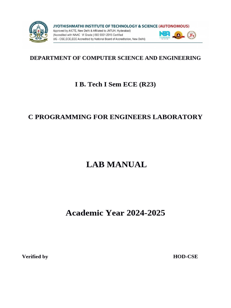 C PROGRAMMING FOR ENGINEERS LABORATORY