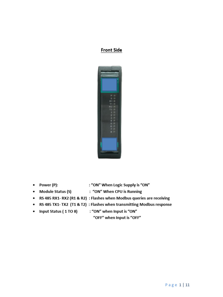 RS 485 TX1- TX2 (T1 & T2) : Flashes when transmitting Modbus response