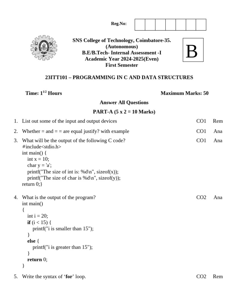 23ITT101 – PROGRAMMING IN C AND DATA STRUCTURES