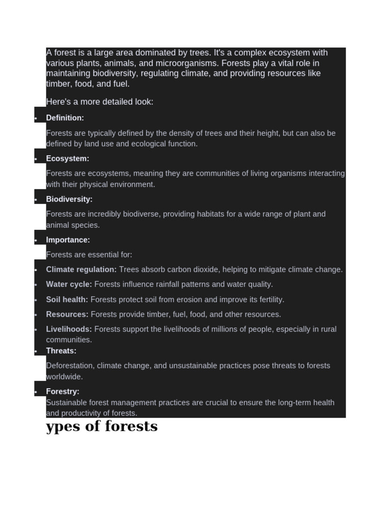 Deforestation, climate change, and unsustainable practices pose threats to forests