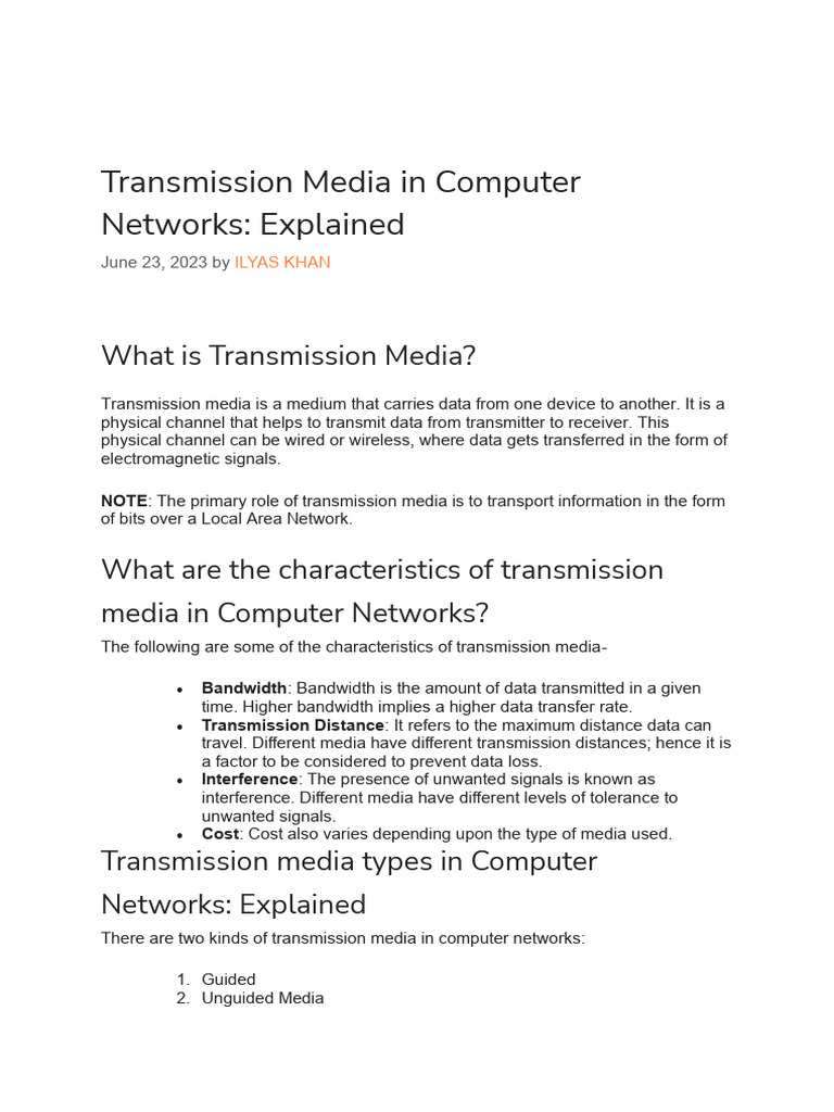 to transmit signals from sender to receiver. It is also referred to as wired media.