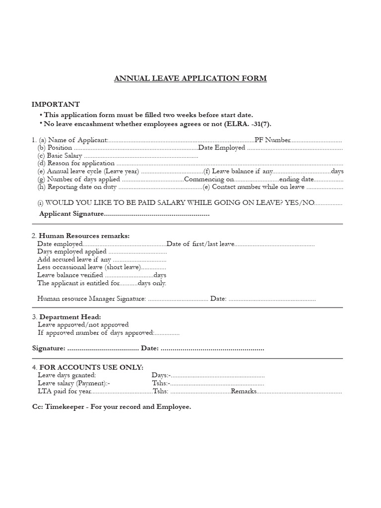 (e) Annual leave cycle (Leave year) .....................................(f) Leave balance if any...................................days