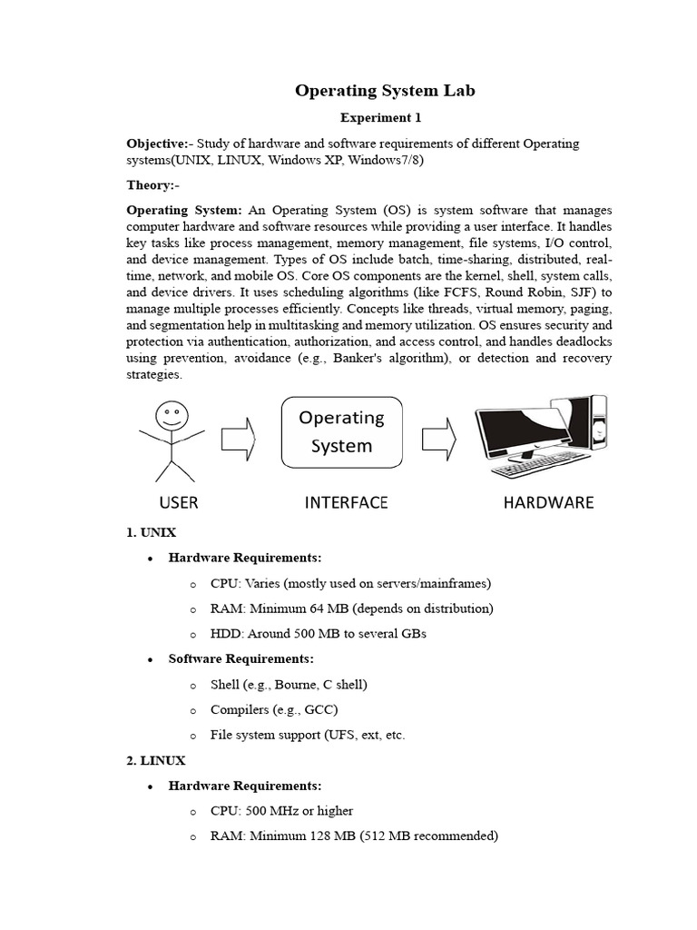 and device management. Types of OS include batch, time-sharing, distributed, real-