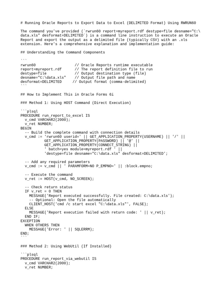 # Running Oracle Reports to Export Data to Excel (DELIMITED Format) Using RWRUN60
