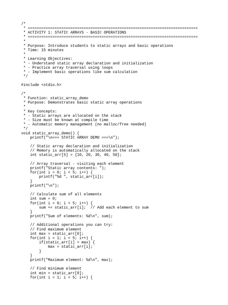 * ACTIVITY 1: STATIC ARRAYS - BASIC OPERATIONS