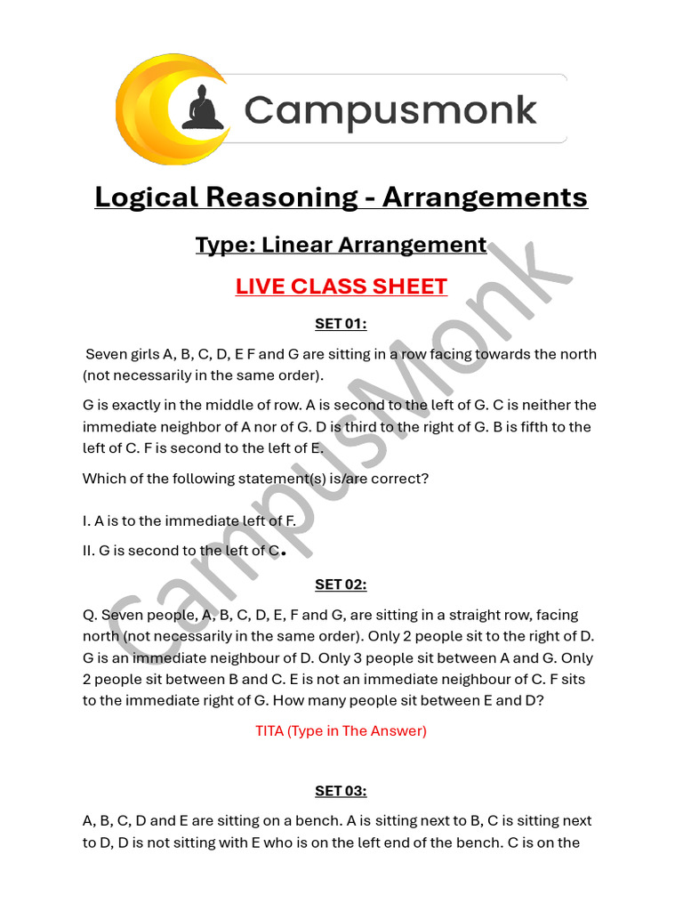 Logical Reasoning - Arrangements
