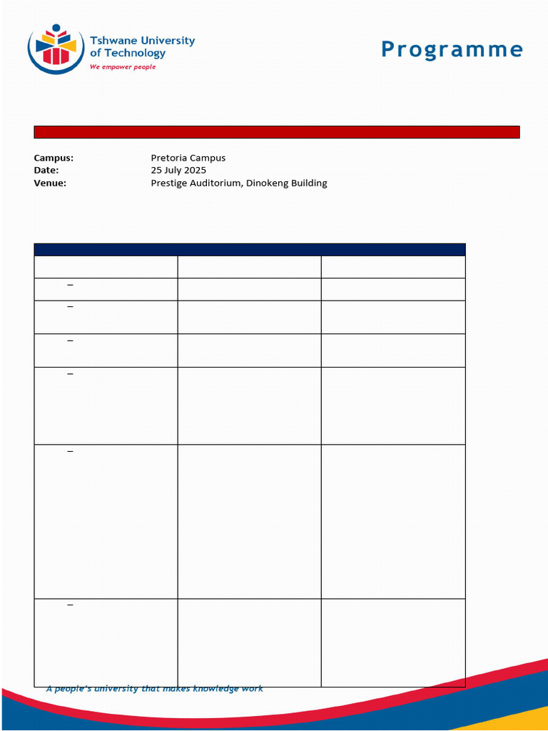 13:35 – 13:45 Vote of Thanks and closure Mr. Kholofelo Mawela