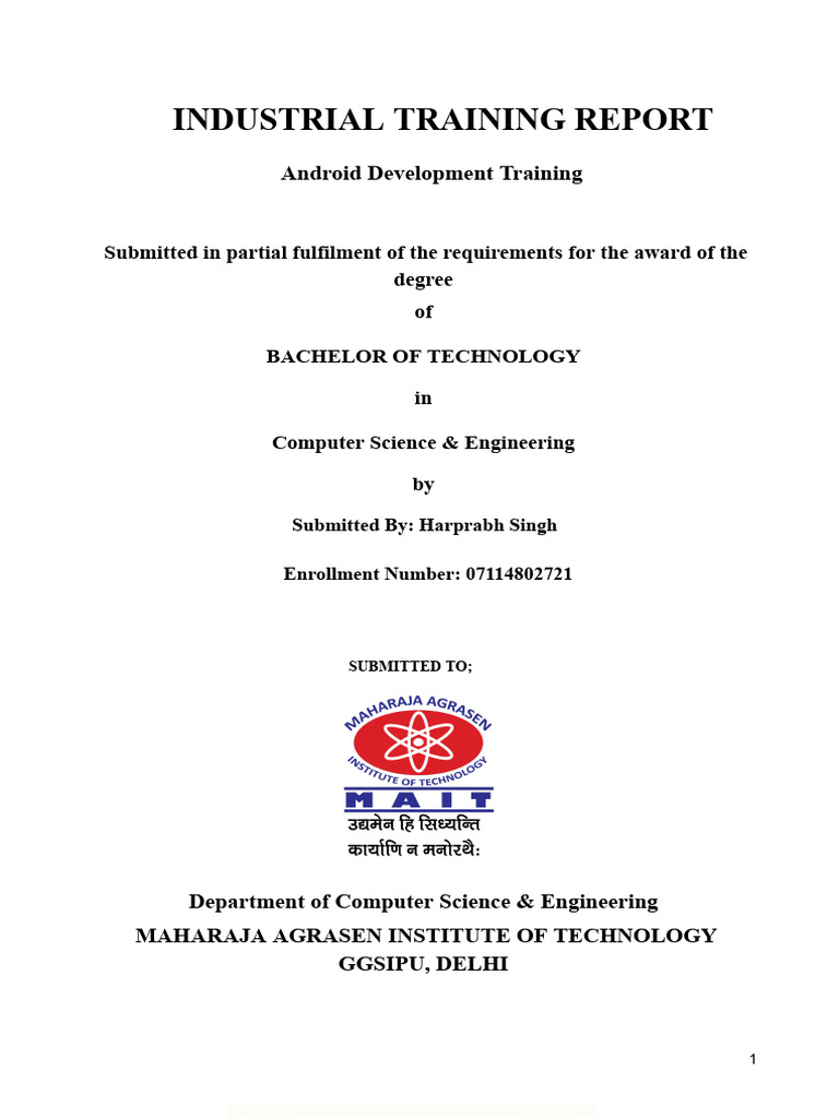 I hereby declare that the Training Report entitled Android Development Training is an authentic