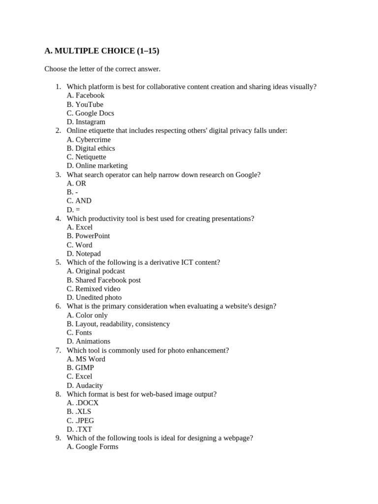 the correct word in the blank provided after each item. Each answer relates to ICT and digital