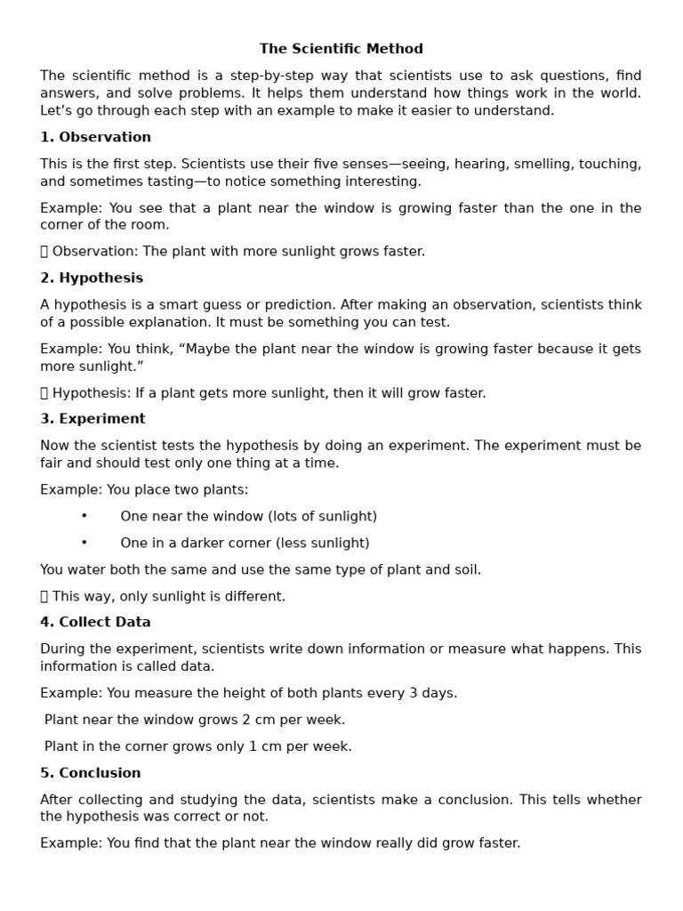 Example: You think, “Maybe the plant near the window is growing faster because it gets