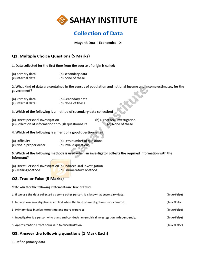 1. If we use the data collected by some other person, it is known as secondary data. (True/False)