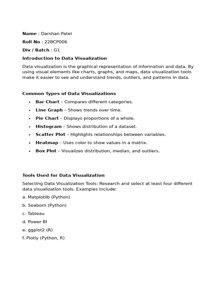 Selecting Data Visualization Tools: Research and select at least four different