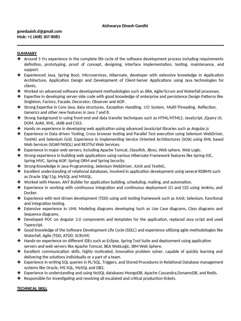 ❖ Experienced Java, Spring Boot, Microservices, Hibernate, developer with extensive knowledge in Application