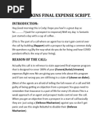 Would you mind if I ask for a few minutes of your time? Before we start, may I know who I m talking with so I may be able to address this call properly? I would like to give you information about the free community service we do for Floridians regarding Life insurance, and by just answering a few quick questions , you could already avail of the APPROVED NEW LOWER RATES for NEW Final Expense Plans, saving Floridians thousands of dollars in additional expenses. I am calling you today because 41% of US adults have no life insurance - that's 95 million people and many more are under insured. Most families only carry eno ugh Life Insurance to replace 4 years of their income in the event of their deat h. Some are NOT aware of short term insurance plans; that expires after the 10t h year. I speak with many of family members whom are ALARMED by the risk exposur e in the event of a health status change in between those years. Which also mean s after 10 years your health will impact your new plan or make you un-insurable or the plan is very expensive at you new age. You know _________, events in one s life is indeed very unpredictable. We may be v ery healthy and kicking today, but something might happen tomorrow that would ca use us or members of our families injuries, or worst case scenarios death. With that fact, it s really very important for us to be prepared at all time. And Natio nal Life Assistance offers all the preparations we need. Unlike other insurance companies that are short term, and some only carry 4 year s of a recipient s income in the event of death, Our Final Expense Partners special ize in plan s that never expires, premium never increases and the security of know ing you and your family are always protected from financial disasters.5618338930 5616590195 5615826365 5618407209 Maybe someone you know passed away due to an accident or a natural cause. Now, y ou can take advantage of a FREE 20 minute phone consult with a Final Expense Exp erts. Tomorrow/today at around _______________, will that work for you? (9:00 AM - 2:3 0 PM) 1. Can you spell your Last name, please? 2. You are above 60 years old, correct? 3. For eligibility pre-screening, in the past 3 years have you been treated for health issues like Stroke, Cancer, Heart Attack and Diabetes with poorly co ntrolled sugar levels? 4. Do you have a private insurer health plan? 5. Now if you proceed with recommendations, you do have a valid checking ac count, right? 6. Is there a secondary number to reach you? 7. Would you like an email confirmation for your Phone Appointment? (if so , get the email add) Okay, that s all about it. Thank you. And have a great day.