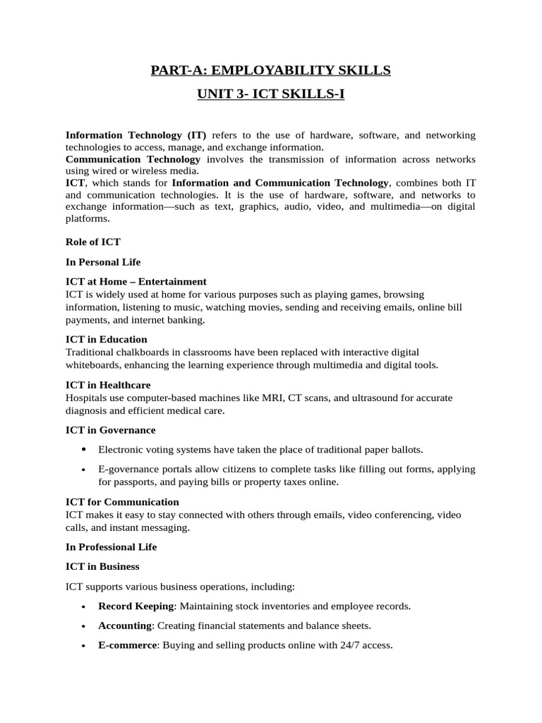 UNIT 3- ICT SKILLS-I