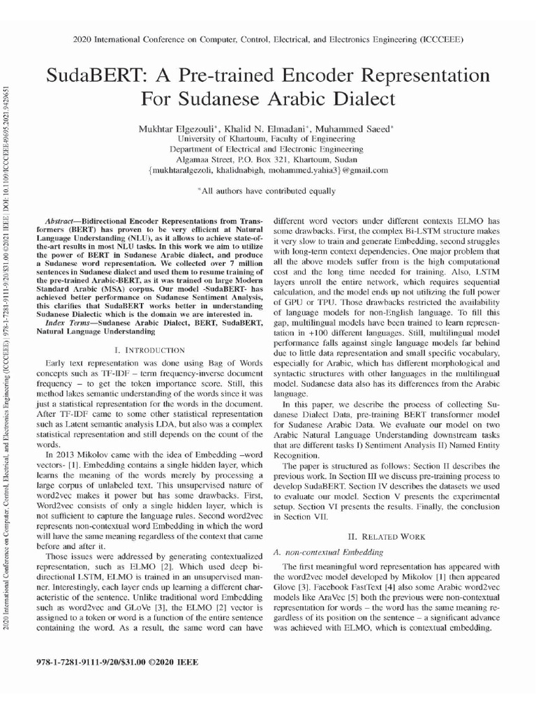 we pre-trained SudaBERT for more epochs on Sudanese data on Industrial, Engineering and Other Applications o f Applied Intelligent