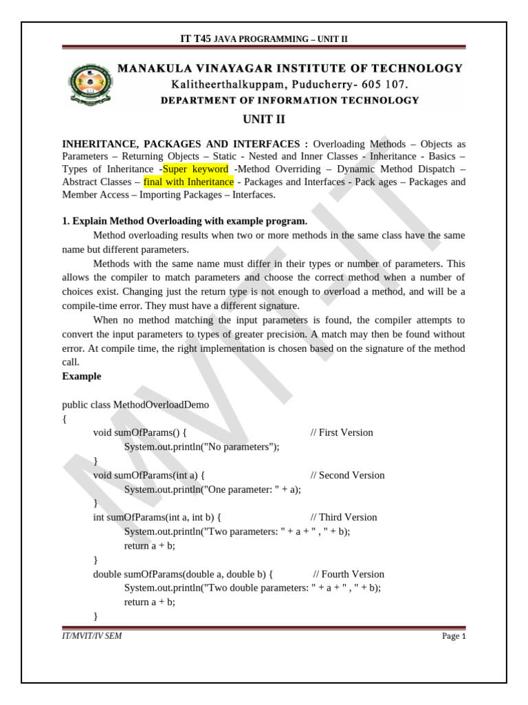 IT T45 JAVA PROGRAMMING – UNIT II