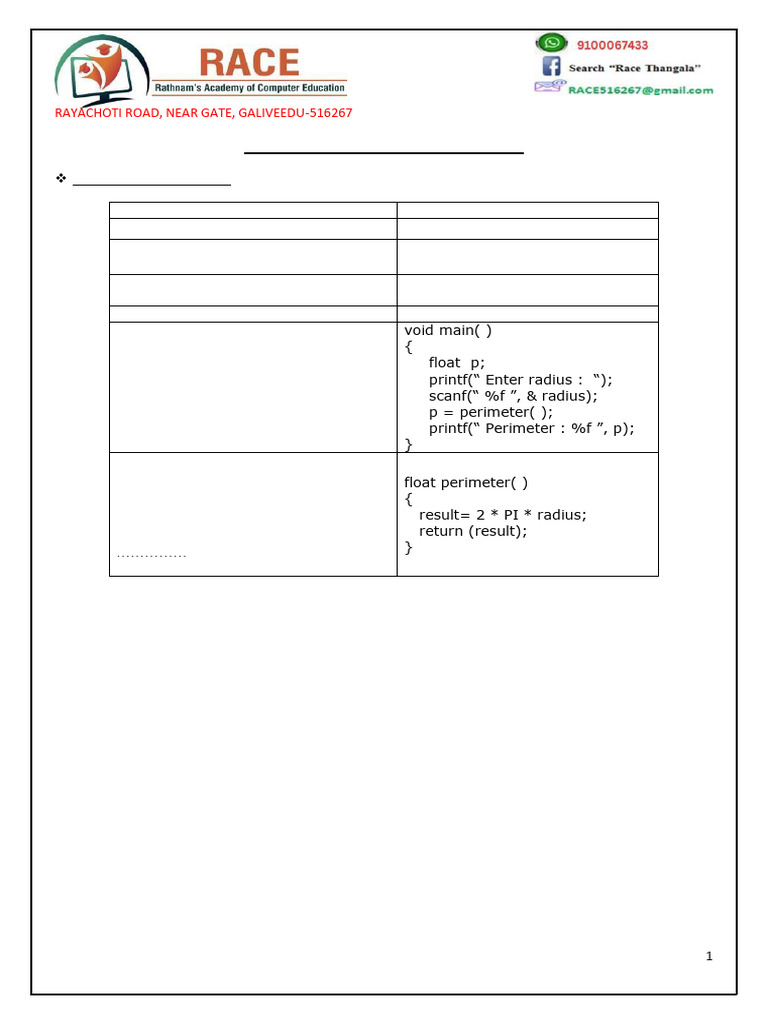 be stored, type of value and also defines the size of memory allocated to the variable. The ‘C’ language Data