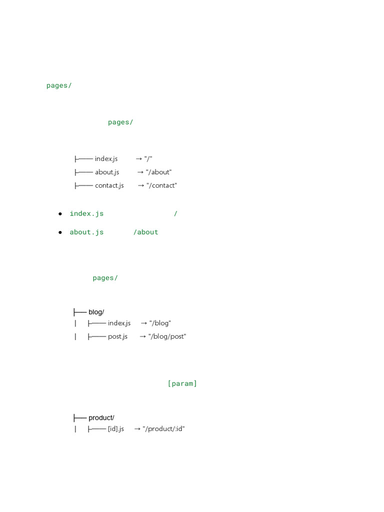 │ ├── [id].js → "/product/:id"
