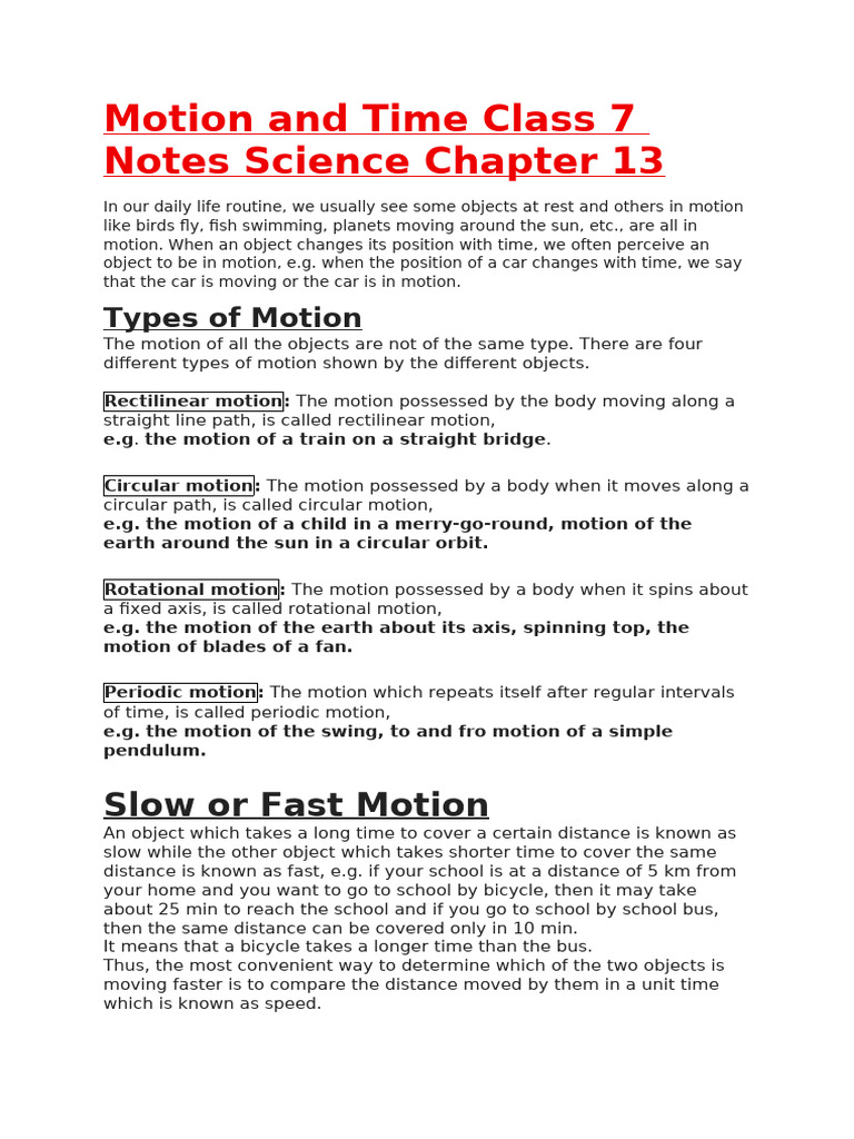 Motion and Time Class 7