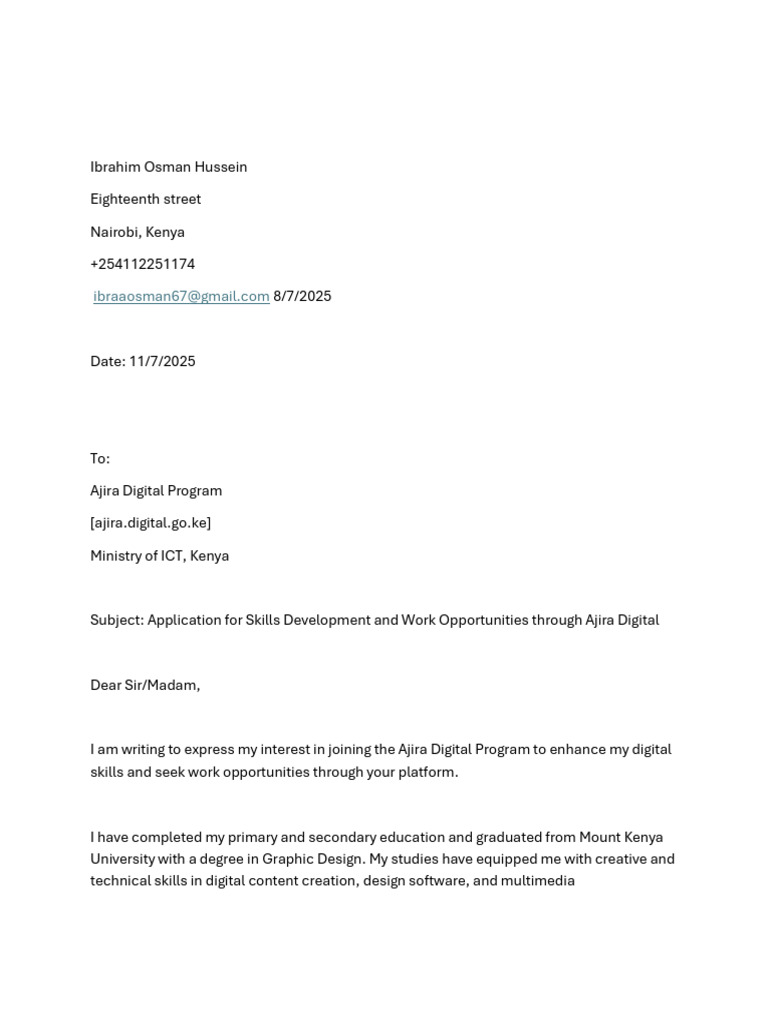 I am writing to express my interest in joining the Ajira Digital Program to enhance my digital