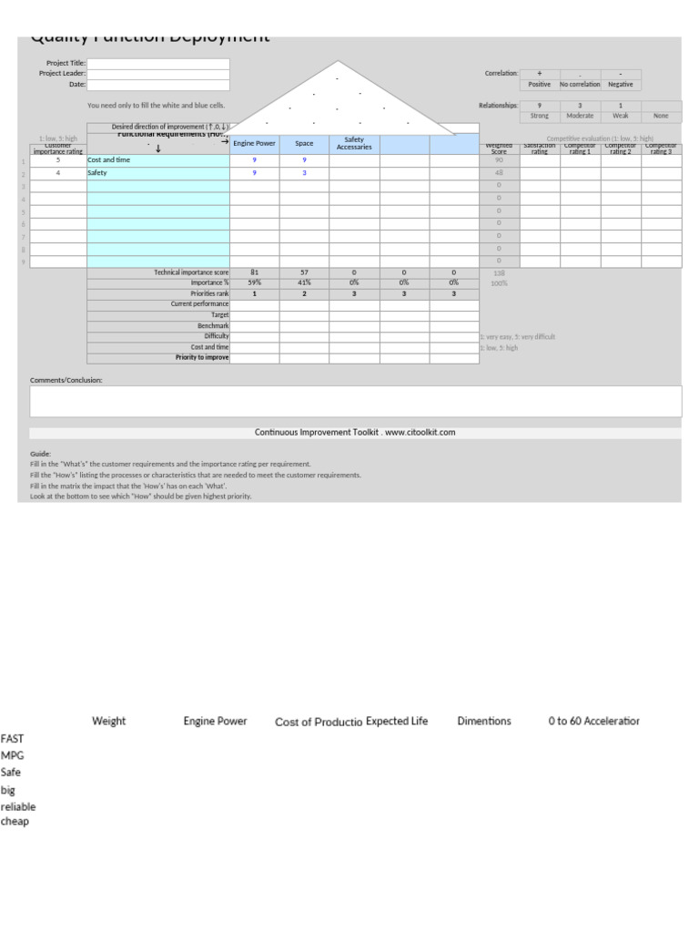 1: low, 5: high Customer Requirements - (What) → Engine Power Safety Competitive evaluation (1: low, 5: high)