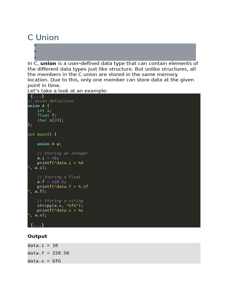 printf("Sizeof A: %ld\n", sizeof(union A));