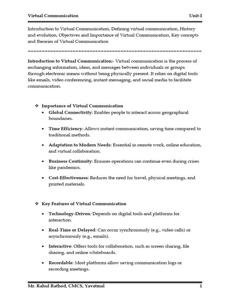 and evolution, Objectives and Importance of Virtual Communication, Key concepts