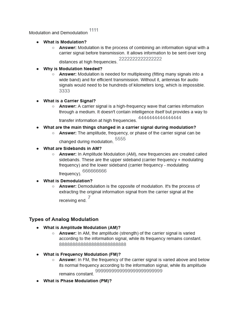 ○ Answer: Modulation is the process of combining an information signal with a