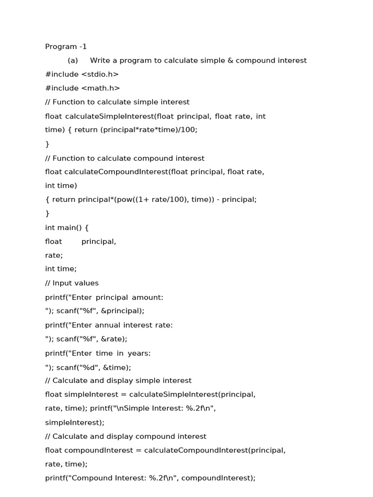 rate, time); printf("\nSimple Interest: %.2f\n",