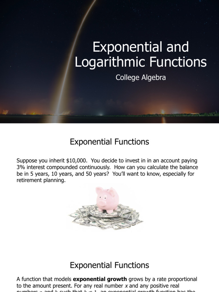 work with base 𝑒, we use the approximation, 𝑒 ≈ 2.718282.