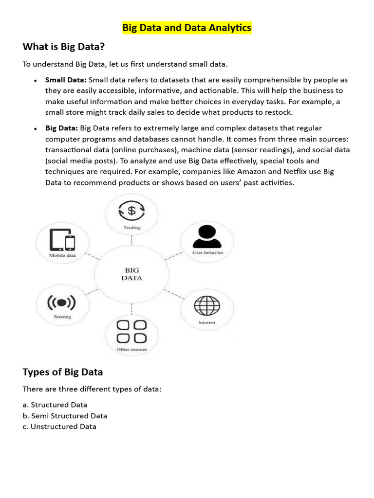 • Small Data: Small data refers to datasets that are easily comprehensible by people as
