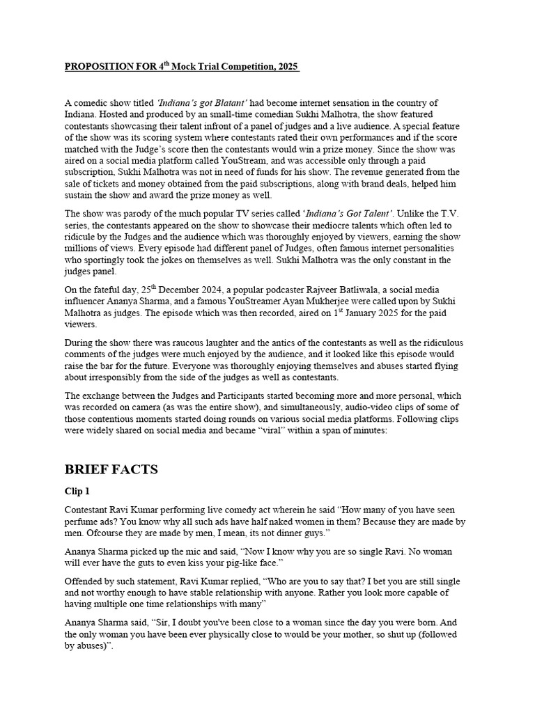 2- The case proposition for this Mock Trial Competition is inspired by a real-life incident, but has
