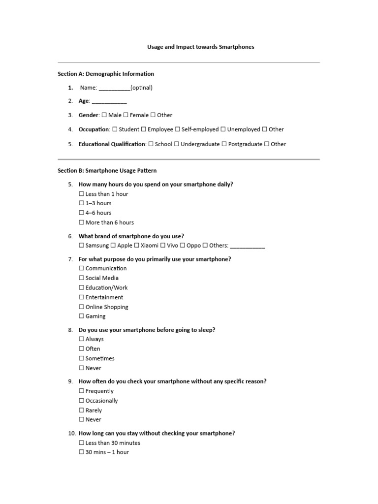 ☐ Samsung ☐ Apple ☐ Xiaomi ☐ Vivo ☐ Oppo ☐ Others: ___________