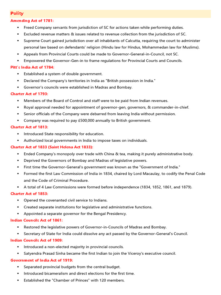 ▪ Formed the first Law Commission of India in 1834, chaired by Lord Macaulay, to codify the Penal Code