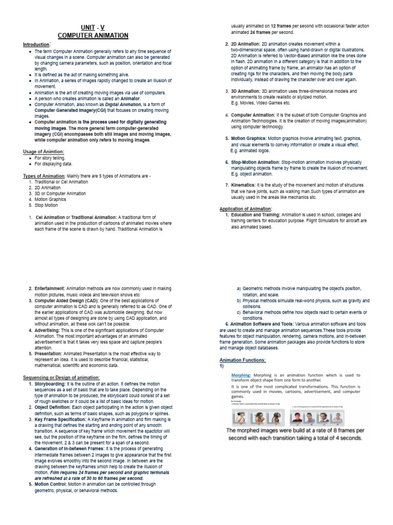 UNIT - V usually animated on 12 frames per second with occasional faster action