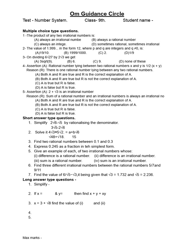 (iii) sum is a rational number. (iv) sum is an irrational number.