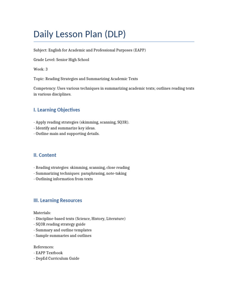 - Apply reading strategies (skimming, scanning, SQ3R).