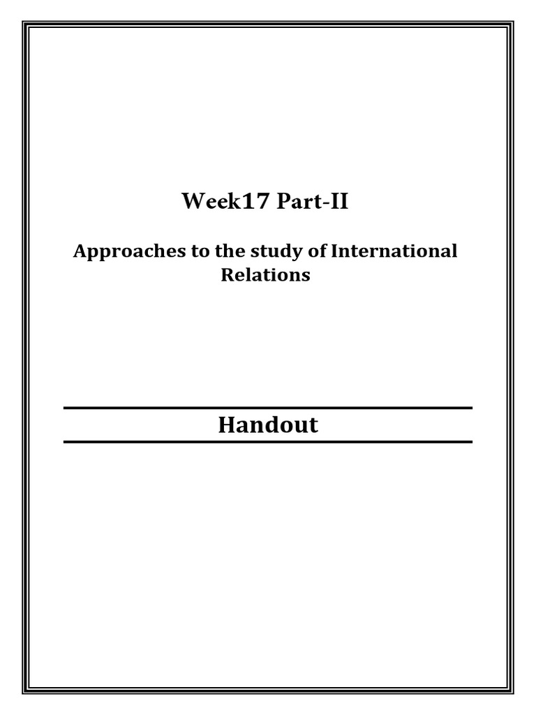 theories.This includes a critique of realism by post-modernists, an examination of the relevance
