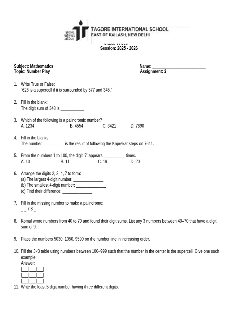 Topic: Number Play Assignment: 3
