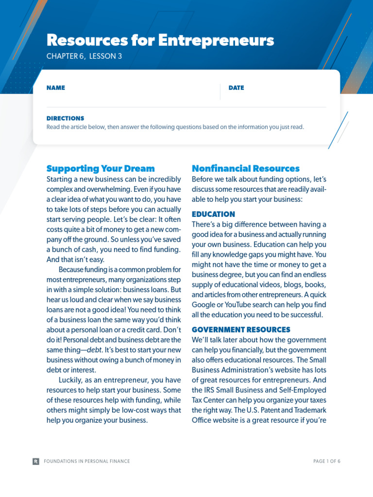 FO U N DATI O NS I N PERSONAL FI NANCE PAGE 1 O F 6