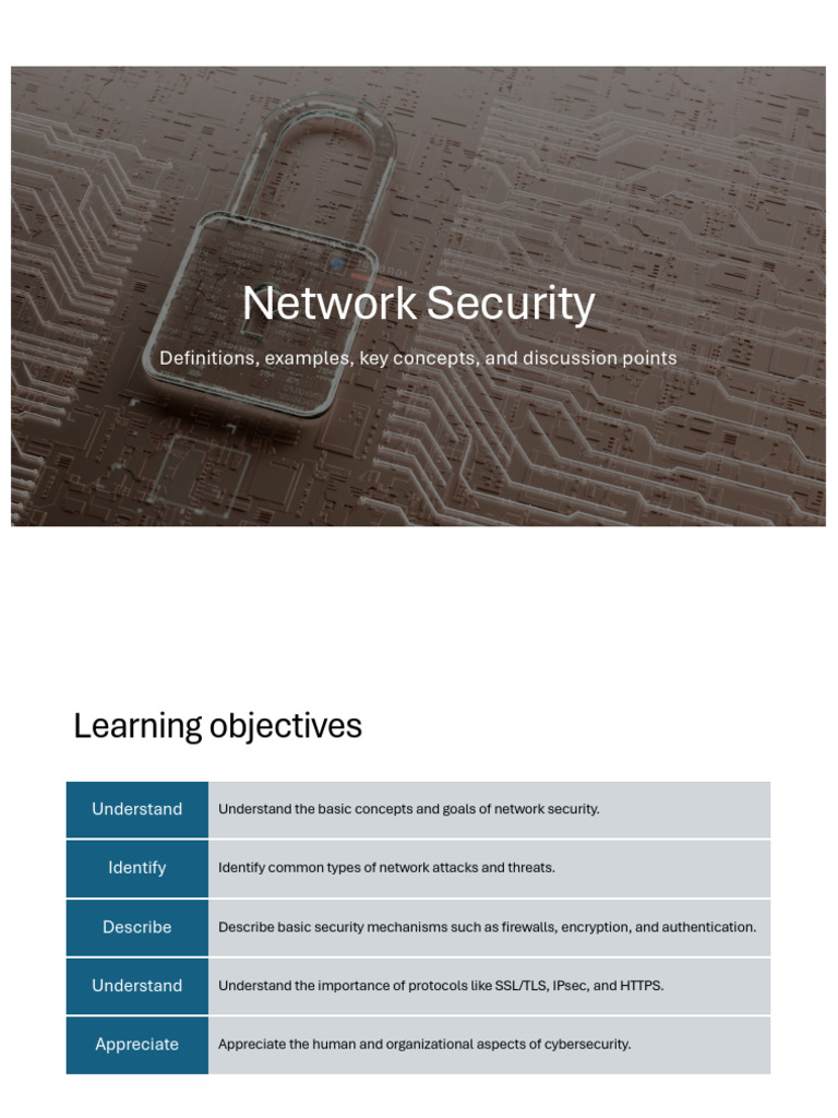 Understand Understand the basic concepts and goals of network security.