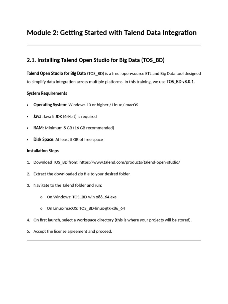 to simplify data integration across multiple platforms. In this training, we use TOS_BD v8.0.1.