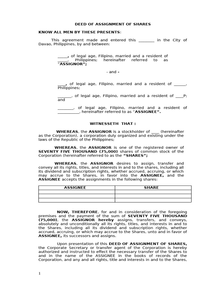 This instrument refers to a DEED OF ASSIGNMENT OF SHARES