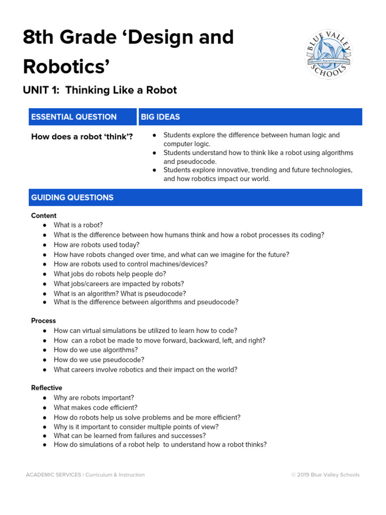 UNIT 1: Thinking Like a Robot
