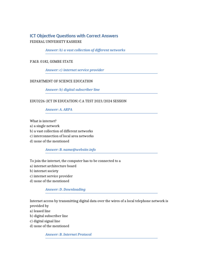 EDU3226 (ICT IN EDUCATION) C.A TEST 2023/2024 SESSION