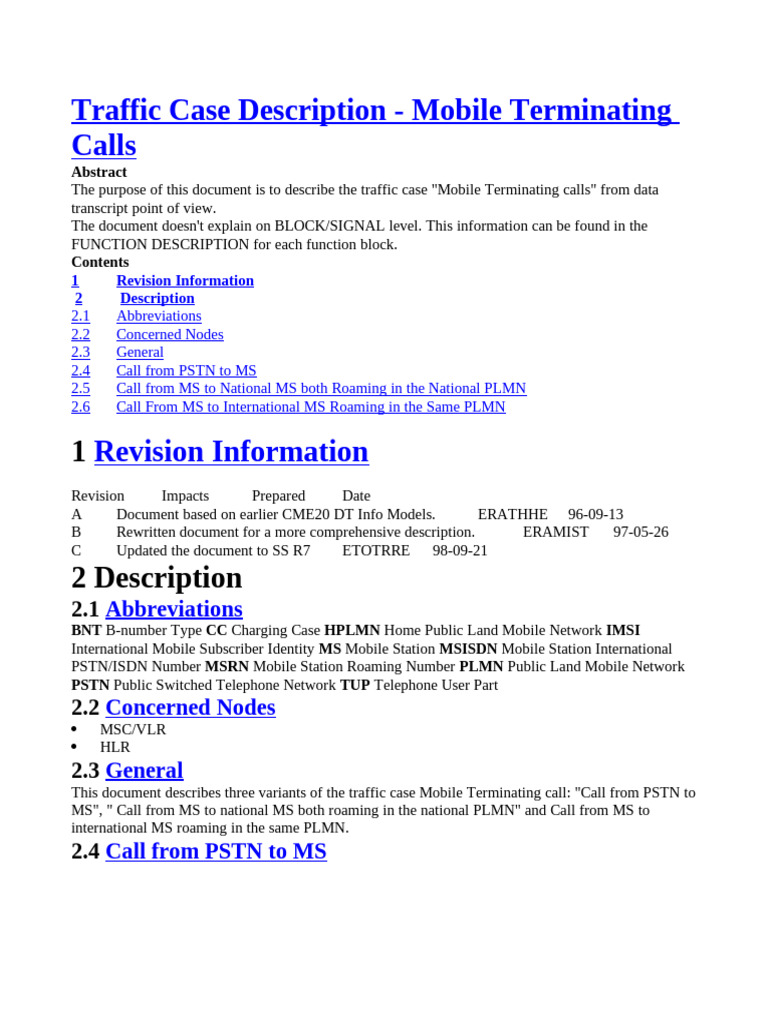 The purpose of this document is to describe the traffic case "Mobile Terminating calls" from data