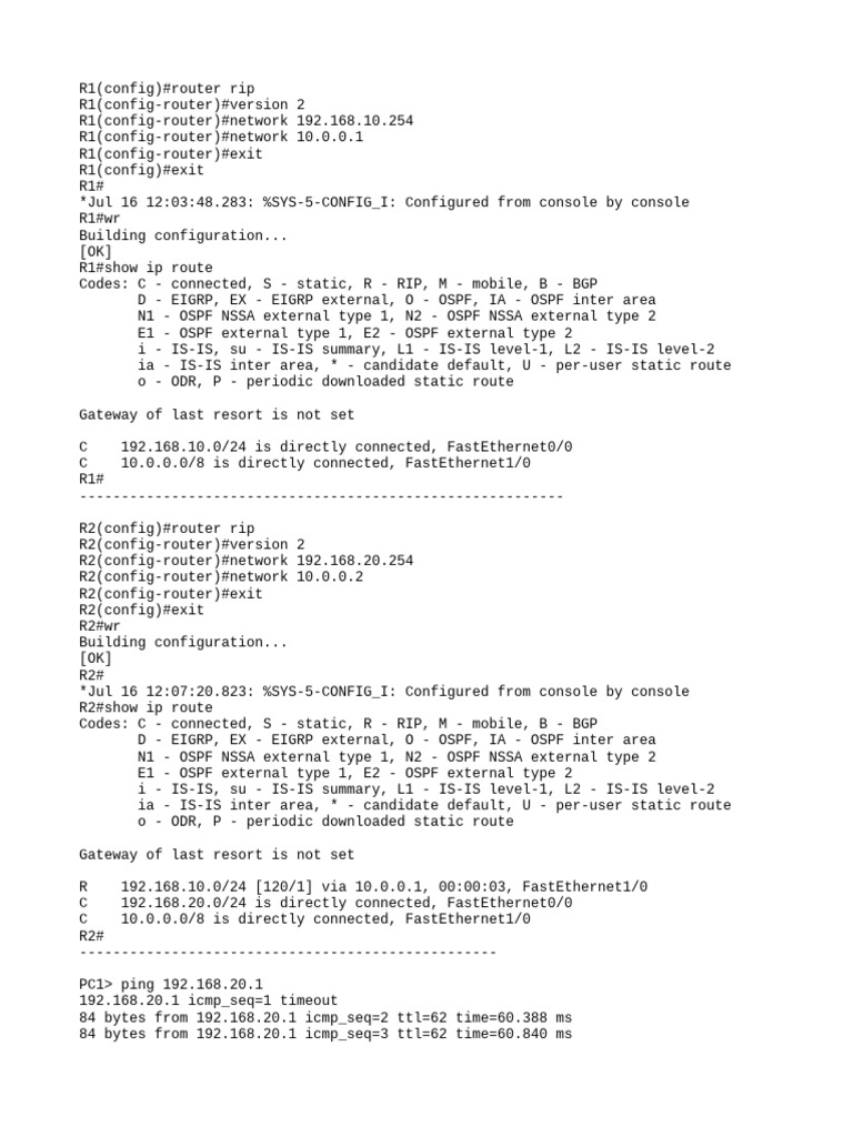 R 192.168.10.0/24 [120/1] via 10.0.0.1, 00:00:03, FastEthernet1/0